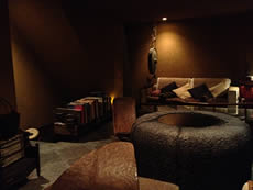 | スペースの真中には 大きな丸い石をくりぬいた 井戸があり、 少しずつ流れ落ちる水音が ひんやりと心地よい。 |