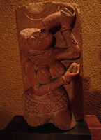 アフリカのもので、 テーブルにはアフリカの セヌフォ族が 使っていたという、 木でできた 100年ほど前のベッドが 利用されている。 |