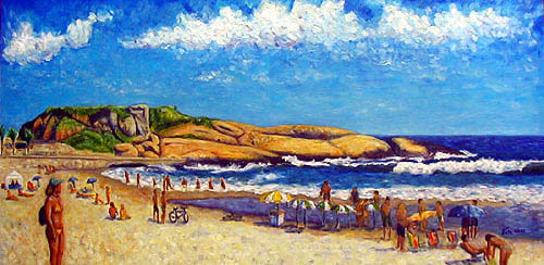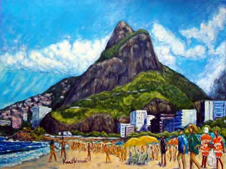 自然と都市文化が融合した街リオと、そこで生きる人々を描いた油彩画約 15 点を展示。