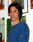 1952 年生まれ。慶應義塾大学卒。 1979 年より南米各国を放浪し、米国ロスアンゼルスを経て再びブラジル、リオ・デ・ジャネイロに移り住む。自然食レストランの経営、日本語教師、読売新聞リオ支局、テレビ局、舞台衣制作、 PC 関連会社の経営など多彩な職業を経験しつつ、リオデジャネイロ州立パルケラージ・アートスクール、リオデジャネイロ近代美術館のアートスクールなどで学ぶ。 1985 年パルケラージ・アートスクール、 1986 年ペトロブラス・ギャラリーグループ展参加。 1987 年ペトロブラスギャラリーにて第一回個展開催。 2003 年帰国後はポルトガル語の通訳・翻訳、教師、ギター弾き語りによるブラジル音楽演奏も。文学・哲学にも造詣があり、芸術一般から世相・文化まで一家言持つ論客。