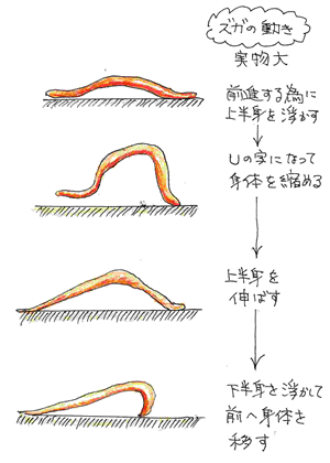 ヒルの動き方は 尺取虫と ほぼ同じです。