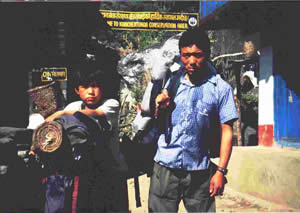 同行の19歳のポーター ダンドゥ君の 生まれ故郷はグンサで親類や知人がたくさんいるのです。宿泊したロッジも親類がやっている所でした。