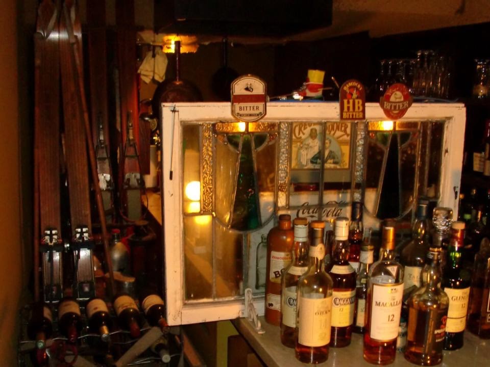 バーカウンターはアンティークな小物で囲まれる